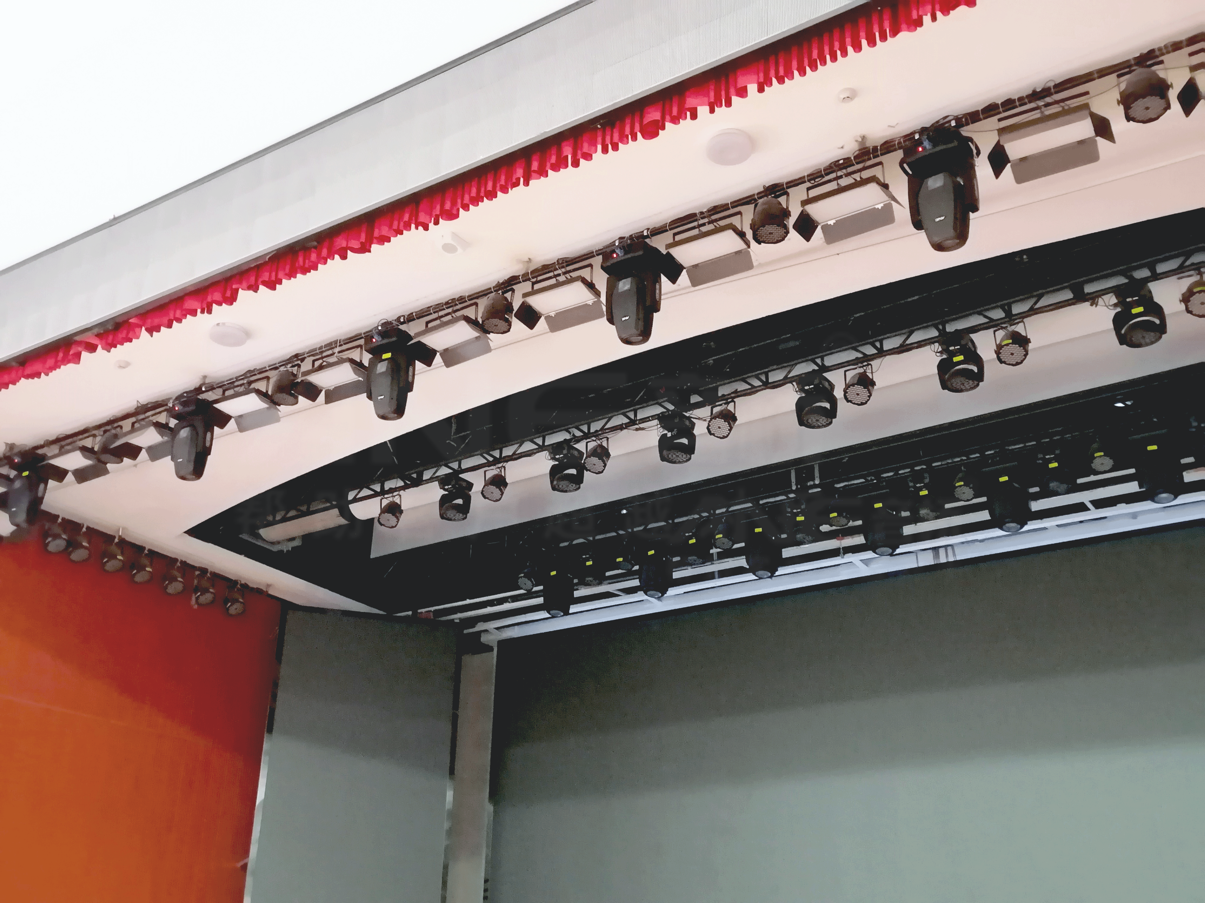 为满足各类校园活动对灯光效果的差异化需求,舞台灯光系统配置了多组舞台专业灯具,支持会议照明、演出渲染、拍摄辅助等功能。灯具采用高显色指数LED光源,具备可调色温与柔光扩散能力,在保证视觉舒适性的基础上,增强舞台表现力。通过集中控制平台预设多套场景灯光模式,用户可实现一键切换,显著提升场景适配效率与观感体验。