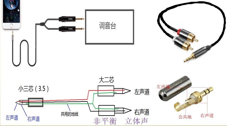 六、笔记本或手机到调音台信号线的接法
